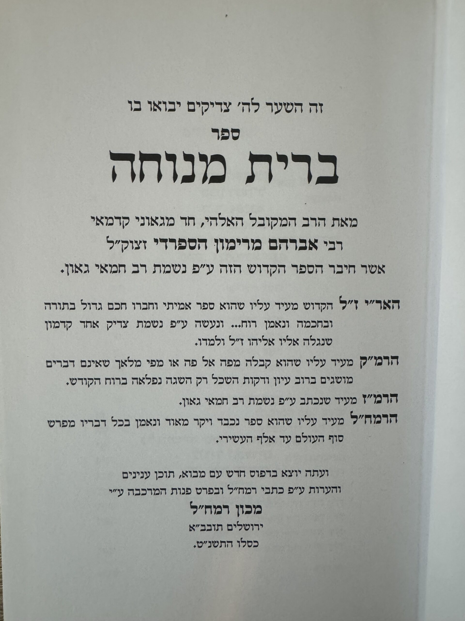 ספר ברית מנוחה מיוחס למקובל האלקי רבי אברהם מרימון הספרדי
